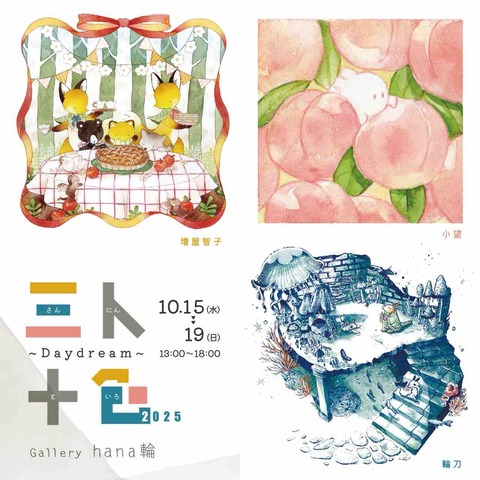 ・3人展は今年で5回目、1回目からのDM作品に載せた原画が並びます。